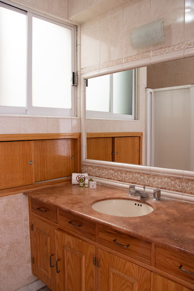Habitación de dos niveles, baño completo, medio baño y cama Queen Size